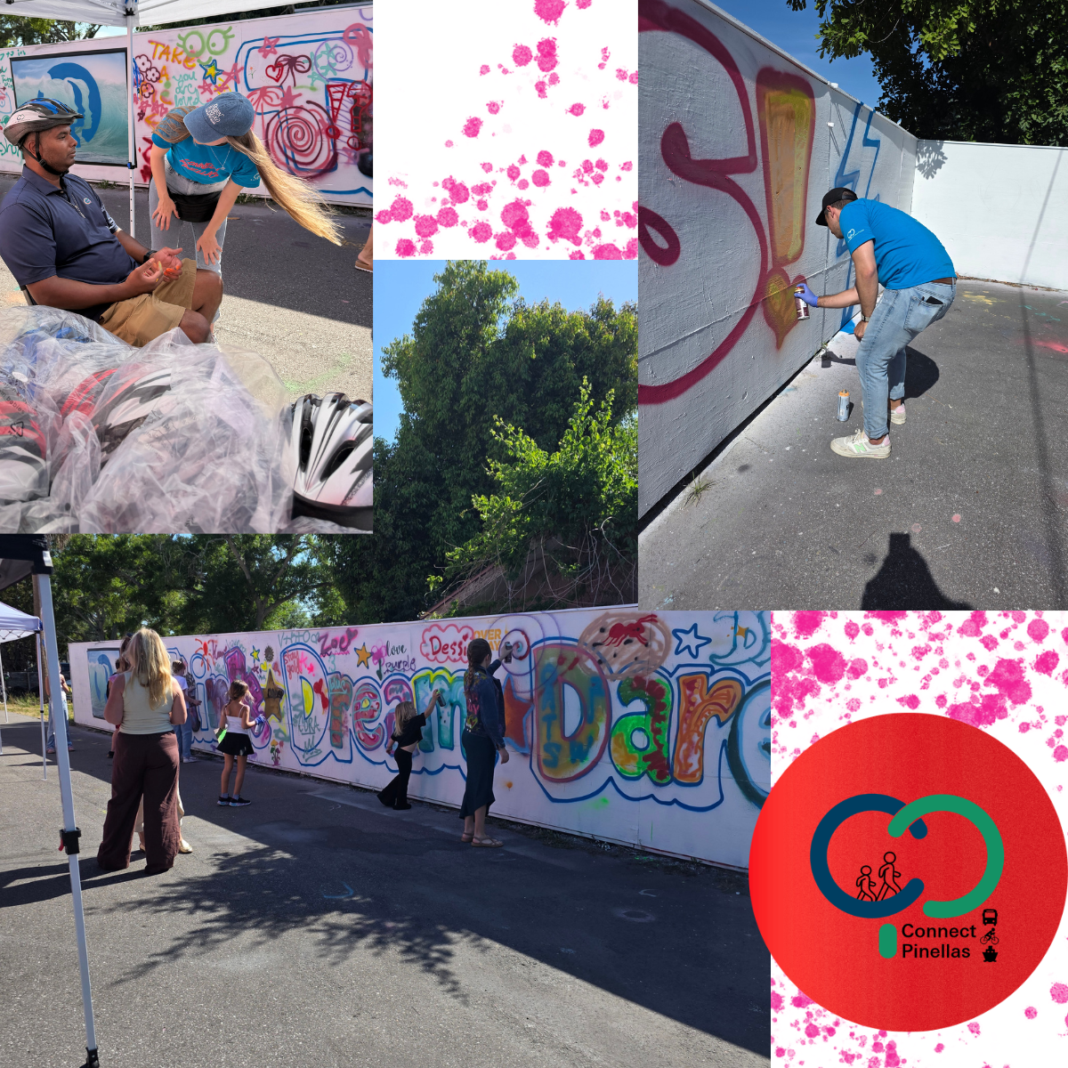 Connect Pinellas handed out helmets and bike maps during All the Worlds Kids annual charity fundraiser and fashion show on April 25th. Fun was had by kids and volunteers alike at Overspay Art space, where graffiti skills were put to the test. If you are interested in having Connect Pinellas come out to your community for helmet fitting and giveaway, email info@connectpinellas.org.